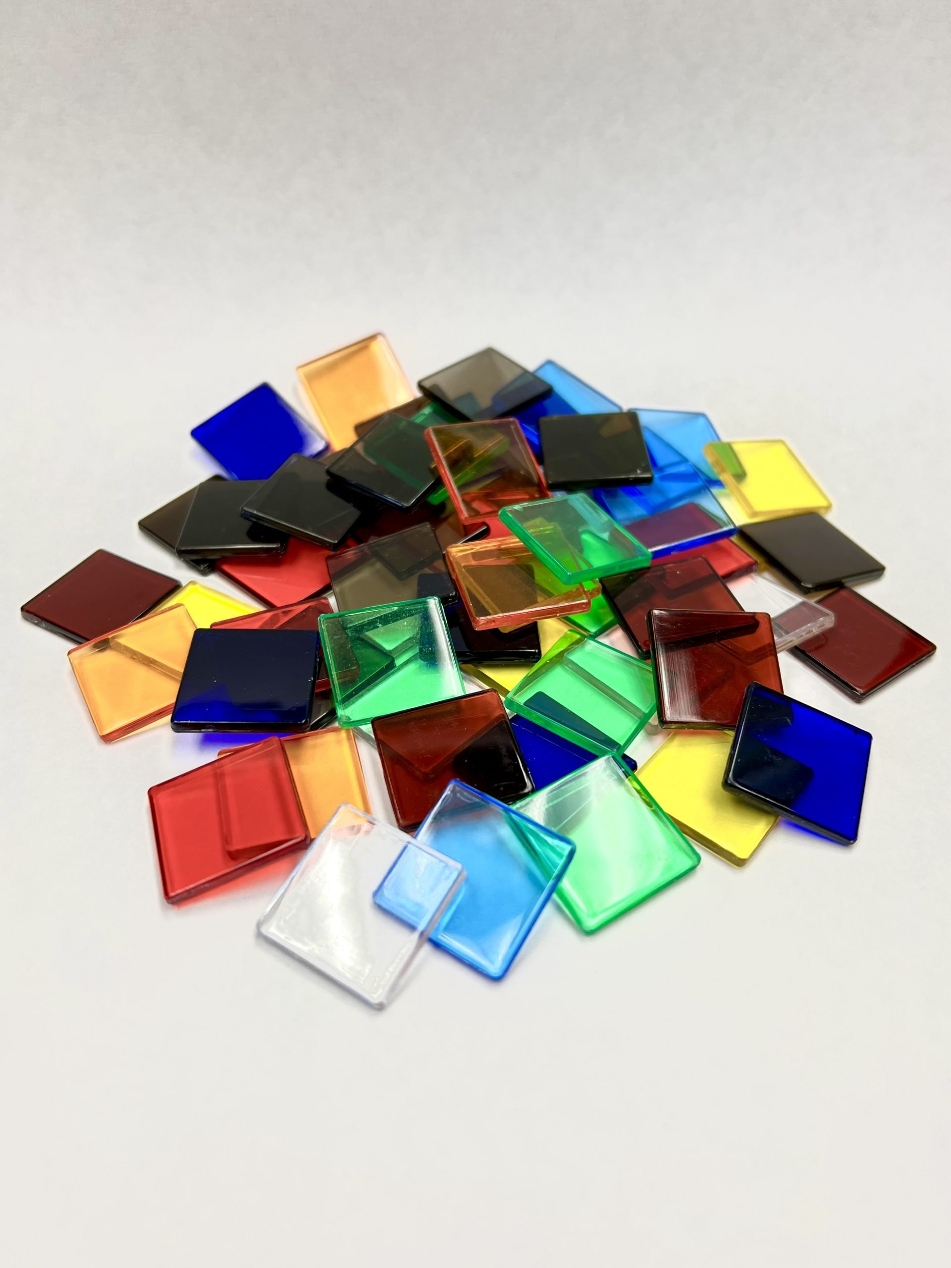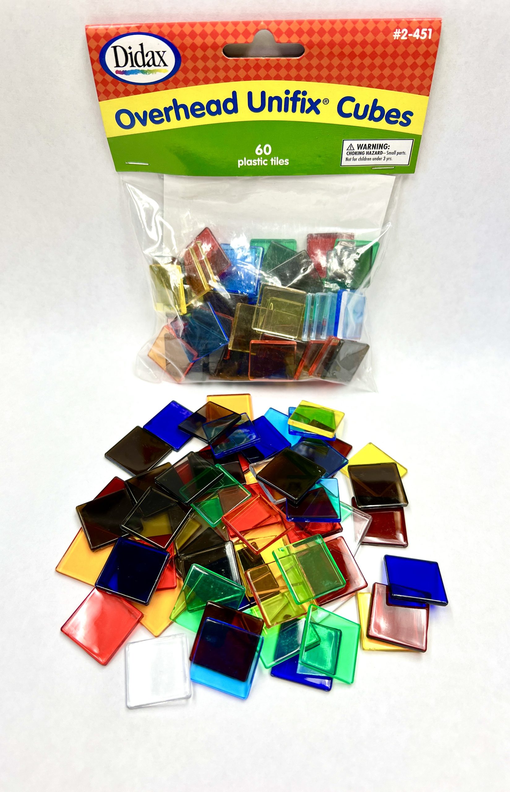 Transparent 1-inch tiles which can be used for overhead projection for the classroom, or in any creative lesson.