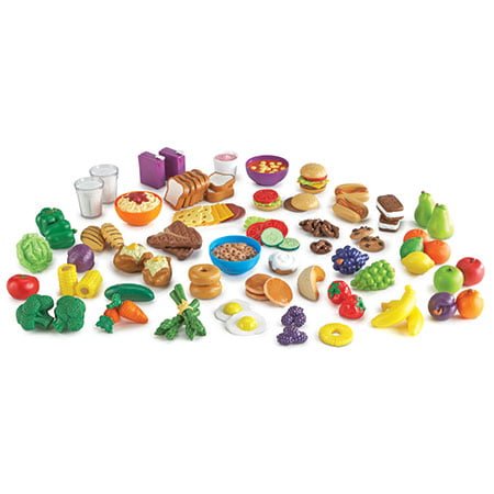 All the yummy food you need for your dramatic play centers and early nutrition lessons. Includes 100 durable pieces packaged in a handy tote.