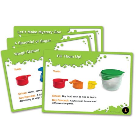 Explore and compare measurements! Chunky, colorful tools are contoured for little hands. Activity cards introduce children to measurement and guide them to making mystery goo, puffy paint, slime and more.