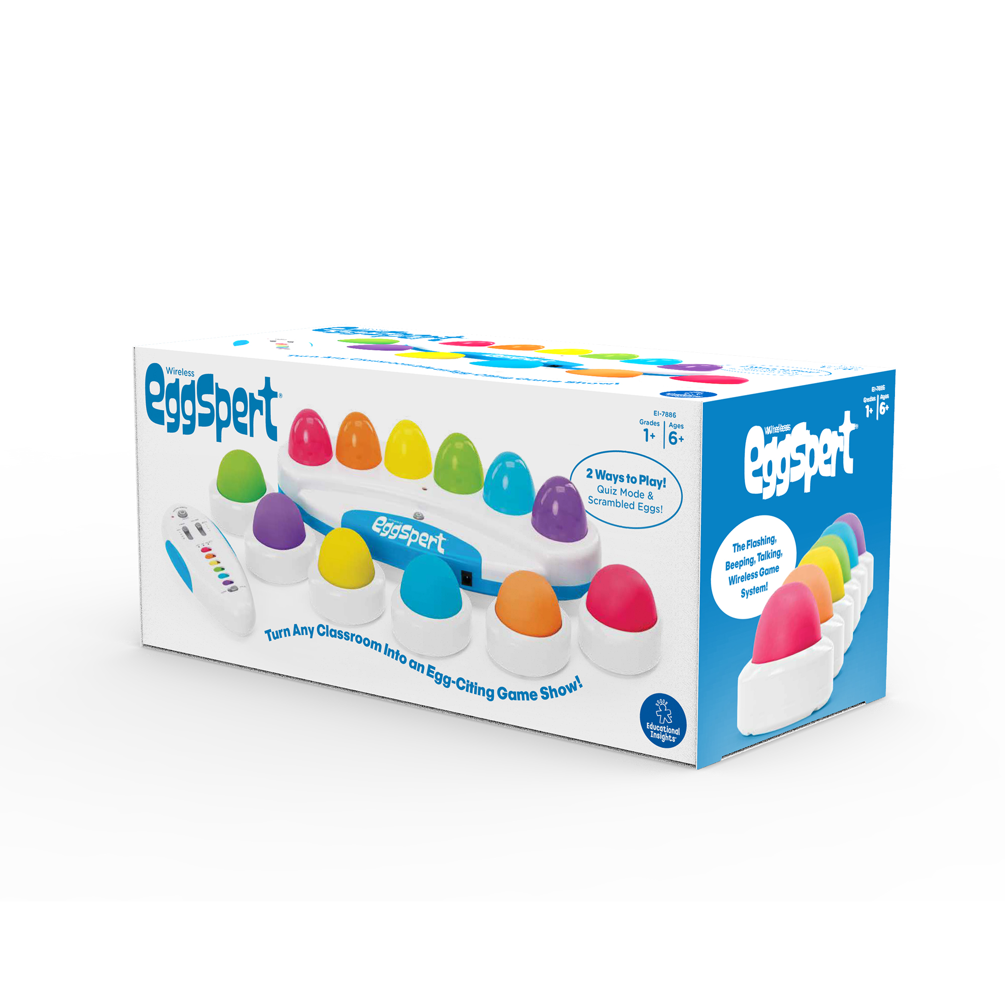 • Includes Wireless Eggspert, 6 wireless student buttons, wireless teacher remote, and guide. Additional student buttons sold separately.